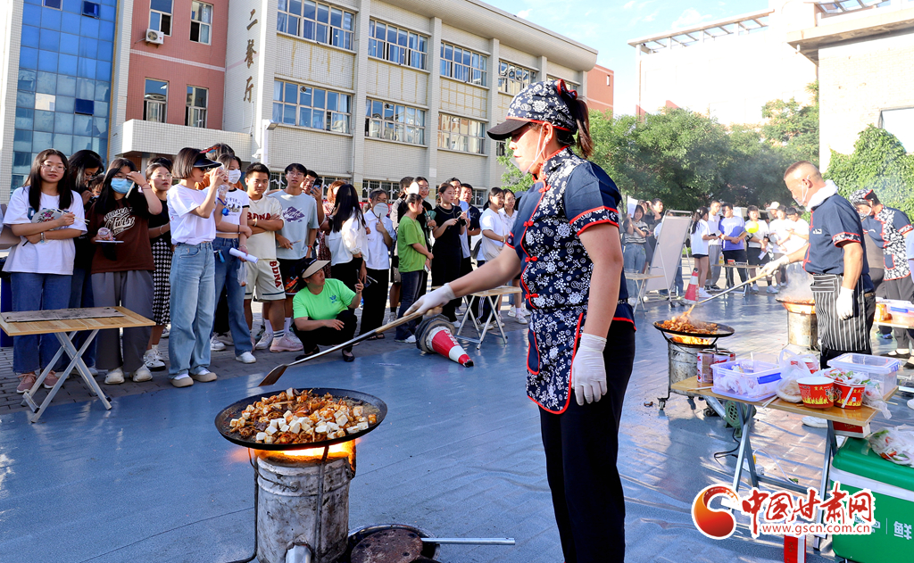 近日,甘肅省張掖市山丹縣“特色小吃進(jìn)高校”活動(dòng)在河西學(xué)院火熱進(jìn)行,“山丹炒撥拉”名小吃的廚師們?yōu)閹熒鷤冎谱髅朗车耐瑫r(shí)還教授炒撥拉制作技藝,讓學(xué)子們?cè)谠谄肺睹朗车耐瑫r(shí)領(lǐng)略了飲食文化的博大精深。