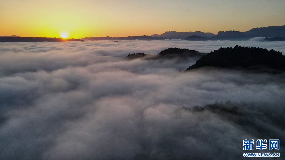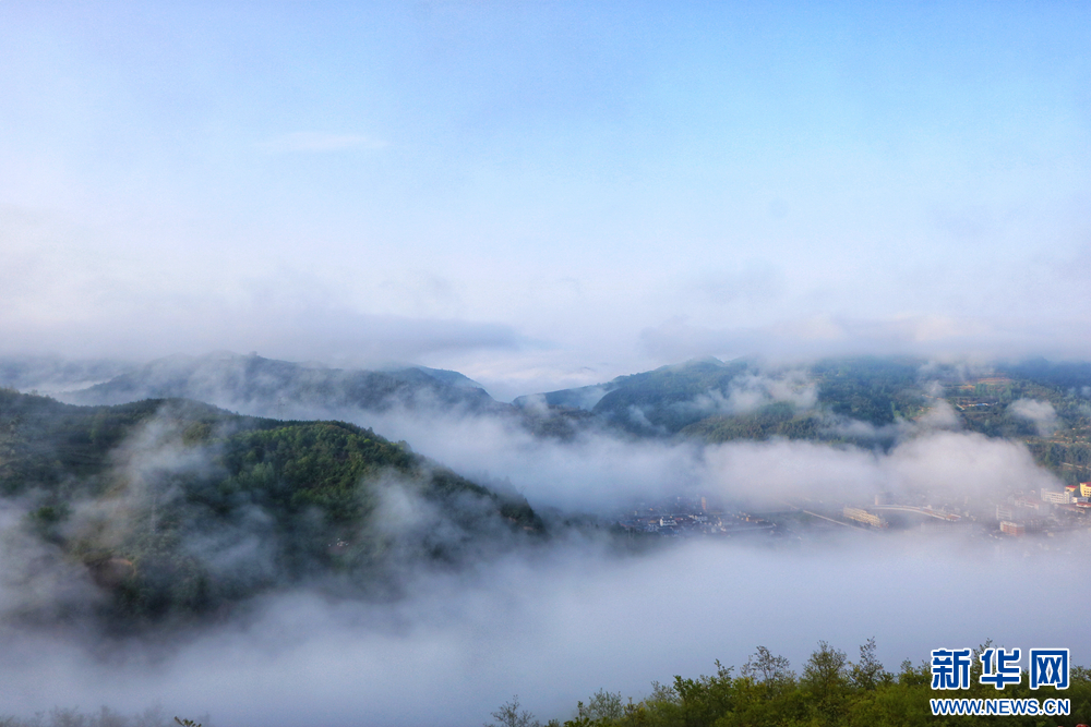 近日,甘肅省隴南市兩當(dāng)縣上空云霧繚繞、煙波浩渺,縣城、山峰在霧海中若隱若現(xiàn),陽(yáng)光從云霧間掠過(guò),勾勒出一幅幅如夢(mèng)如幻的美麗畫(huà)卷。新華網(wǎng)發(fā)(楊曉 攝)
