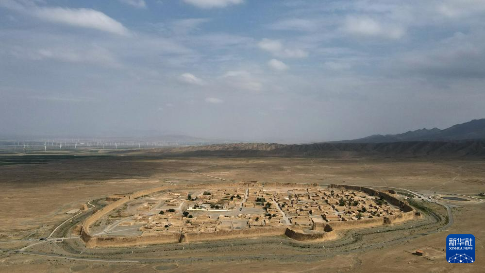 這是位于甘肅省白銀市景泰縣寺灘鄉(xiāng)的永泰古城。永泰古城始建于明萬歷年間,為當(dāng)時的軍事要塞,因形似金龜,又名“永泰龜城”。古城城圍周長1.7公里,高12米,2006年被命名為全國重點文物保護(hù)單位(7月11日攝,無人機(jī)照片)。新華社記者 陳斌 攝