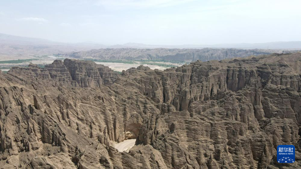 這是位于甘肅省白銀市景泰縣中泉鎮(zhèn)龍灣村的黃河石林景觀。黃河石林千峰競奇、峽谷蜿蜒,與黃河遙相呼應(yīng),形成山環(huán)水轉(zhuǎn)、動靜結(jié)合的自然奇觀(7月11日攝,無人機(jī)照片)。新華社記者 張可任 攝
