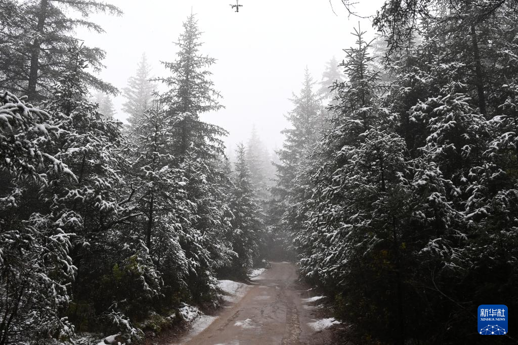 金秋時(shí)節(jié),甘肅省張掖市肅南裕固族自治縣境內(nèi)的祁連山脈迎來一場降雪,云杉翠柏與皚皚白雪相映成趣,美不勝收。