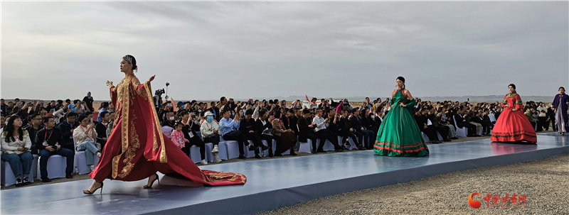 走秀的模特也表示,在玉門關(guān)下走秀很特別,行走時(shí)有清風(fēng)在面頰拂過(guò),特別有感覺(jué),大地舞臺(tái)厚重寬廣更有時(shí)尚感。