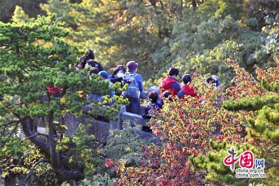 10月以來(lái)黃山風(fēng)景區(qū)已進(jìn)入秋色斑斕季節(jié),是一年中色彩最豐富的季節(jié),晨曦暮落,處處如畫,古松與秋果相隨,青紅交織,金黃色的樹葉隨秋風(fēng)在空中飛舞,或飄落在游步道上、或散落在峽谷中,處處生機(jī)盎然,令人流連忘返,明代旅行家徐霞客是這樣贊美黃山的“楓林相間,五色紛披,燦若圖繡”。