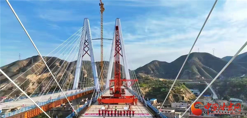 桑園子黃河大橋全長959米,是國內(nèi)8度以上地震區(qū)最大跨度分幅聯(lián)塔斜拉橋,也是我省打造的首條“5G+智慧公路”示范項目。上午10時,隨著最后一片梁成功架設(shè)到橋墩上,桑園子黃河大橋?qū)崿F(xiàn)合龍。該橋梁在建造過程中克服了橫跨黃河天險、桑園子山險區(qū)、隴海鐵路、東金公路帶來的巨大挑戰(zhàn),無懼區(qū)域內(nèi)22條地震斷裂帶和峽谷大風(fēng)沖擊的影響,同時,緊跟創(chuàng)新驅(qū)動發(fā)展理念,深入開展多項創(chuàng)新技術(shù)應(yīng)用研究,實現(xiàn)多個“從0到1”的突破。