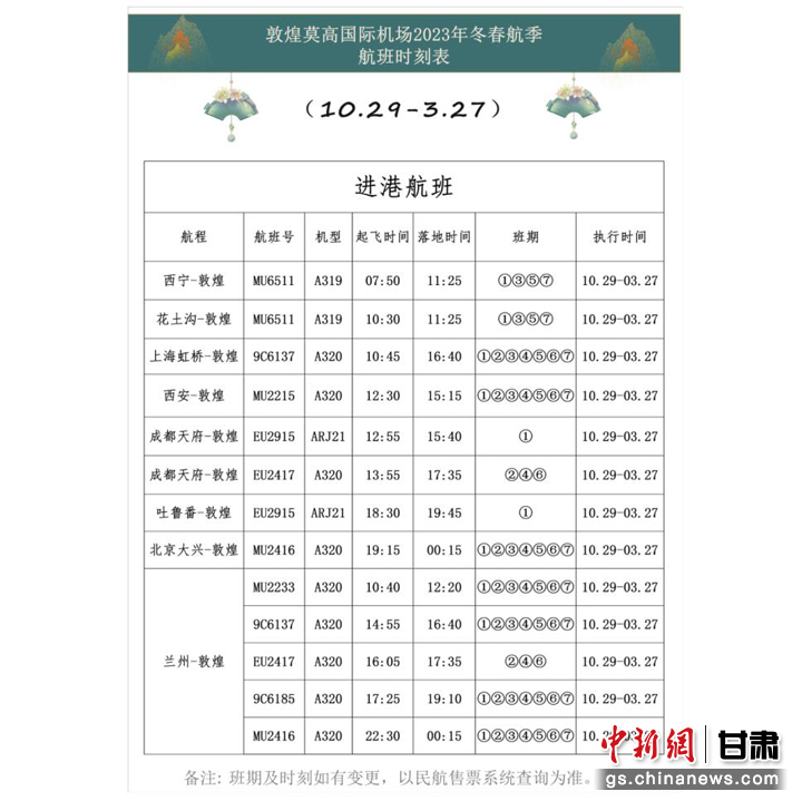 中新網(wǎng)甘肅新聞10月25日電 秋風(fēng)已至,秋意漸濃,敦煌莫高國(guó)際機(jī)場(chǎng)加密8條國(guó)內(nèi)新航季線(xiàn)。10月29日起,全新開(kāi)航,盡情享受秋日浪漫,一起奔赴一場(chǎng)美好的秋色之旅。(完)