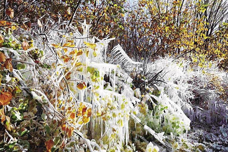 連日來,隨著我省河西地區(qū)氣溫驟降,張掖蘆水灣旅游度假區(qū)的各種植物上掛滿了晶瑩剔透的冰掛,玉樹瓊枝,美不勝收,成為深秋景區(qū)獨特的風(fēng)景。