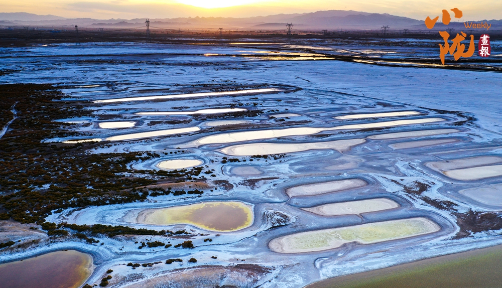 陽光穿透晨霧,灑在白墩子鹽沼濕地的每一個(gè)角落。一方方水域隨著光線的變化,呈現(xiàn)出瑰麗的色彩。
