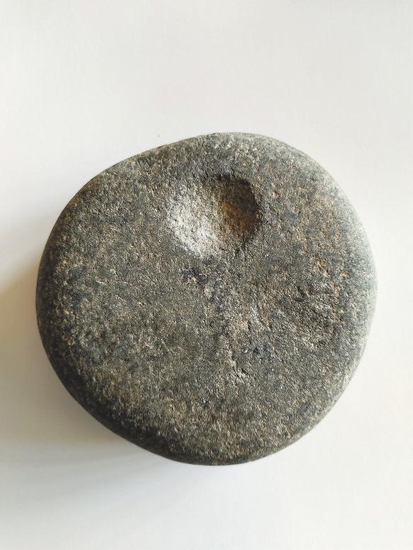 齊家文化的“盤狀石器”除“敲砸器”以外,還有一點比較特殊,其雙面分別琢制有日紋和月紋。目前所知,這類“盤狀石器”只在齊家文化遺存中出現,是齊家文化石器的特有器型,石質大多為礫石、河礫石。這種齊家文化特有的琢紋盤狀石器,學界尚未有統(tǒng)一命名,通常所見為:“圓形見手窩敲砸器”“刻符石”“刻符石器”。民間俗稱為:“練功石”“日月石”“星月石器”等。
