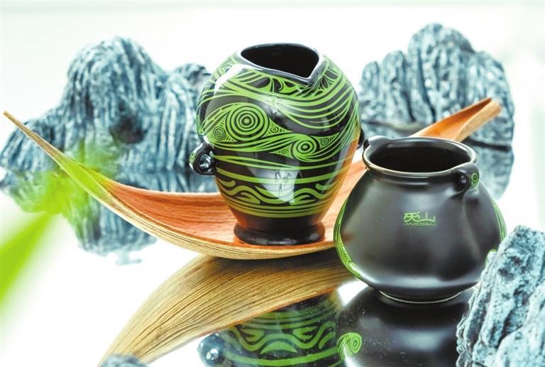 “馬家窯彩陶杯”的色彩設(shè)計(jì)也有創(chuàng)新之舉。李思成告訴記者:“為了能將古老神秘的彩陶紋樣與當(dāng)下年輕審美結(jié)合,決定選擇更貼近自然風(fēng)情的綠色線條,采用黑瓷,更能凸顯器皿的質(zhì)感。就這樣,既保留文化底蘊(yùn)的同時(shí),又賦予了它全新的質(zhì)感,在視覺(jué)上更具有沖擊力。”