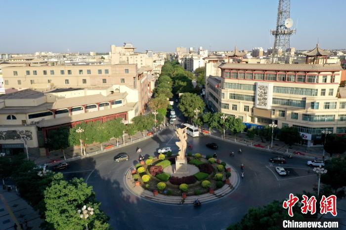 圖為敦煌城市內一景,敦煌城標——反彈琵琶。(資料圖)張曉亮 攝