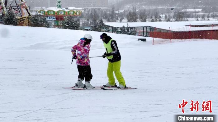 圖為滑雪教練對(duì)臺(tái)胞青年進(jìn)行首次滑雪前的培訓(xùn)。王牧雨 攝