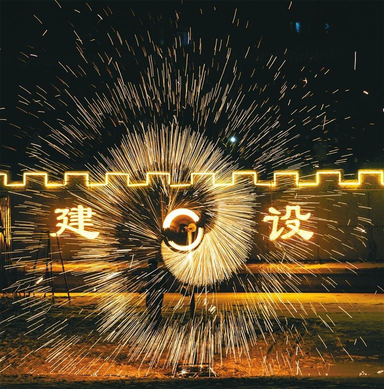 2月21日晚,敦煌市“火樹銀花·瑞龍迎春”打鐵花民俗展演活動在黨河風情線舉行,喜迎元宵佳節(jié)。朵朵鐵花凌空綻放,流光溢彩,吸引了眾多市民游客前來觀賞。 敦煌“打鐵花”歷史久遠,起源于唐宋,后經千年演變,成為春節(jié)期間一項富有地方特色的民俗文化活動。