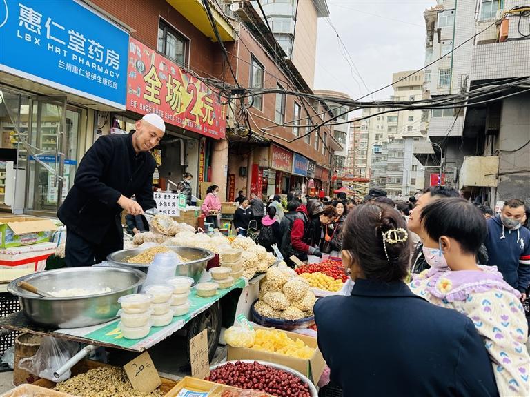 人間煙火味,最撫凡人心。說起煙火氣,小吃街巷一定算得上最有煙火氣的地方。華燈初上,蘭州正寧路夜市、大眾巷新光夜市、黃河食渡文化夜市等夜市人頭攢動,大家在各個小吃攤位前流連。甜醅子、灰豆子、釀皮、烤肉串、牛奶雞蛋醪糟、熱冬果、麻辣燙……蘭州小吃以獨(dú)有的風(fēng)味,征服了游客的味蕾——不少網(wǎng)友直呼,原來蘭州不僅擁有一碗面,更有內(nèi)涵豐富、口味獨(dú)特的硬核小吃,真是食客的“天堂”,誰不說一句蘭州的小吃好吃?