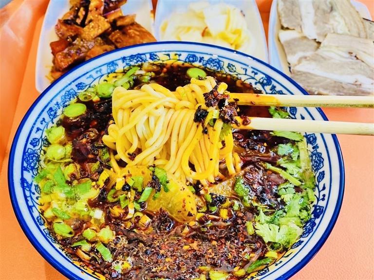 三月末的蘭州,天色尚未亮,蘭州城區(qū)千余家牛肉面館已開門營業(yè)。不少市民就來趕“頭鍋”,喚醒一天的精氣神。早上七八點(diǎn),面館的人越來越多,大家排著隊,但并不需要等很久,稍等片刻牛肉面便出鍋了,熱氣騰騰,香氣四溢,吃起來更是回味無窮:面條筋道、湯汁濃郁。吃罷面,吹開面湯上紅紅的辣椒油,喝一口湯,滿福滴很!