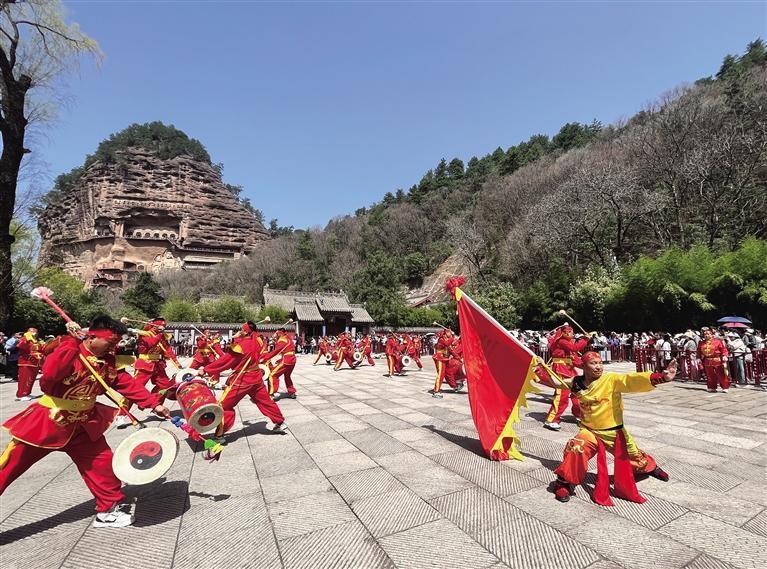 3月30日9時,天水伏羲廟前人潮涌動,熱鬧非凡,來自蘭州的太平鼓隊(duì)以精彩絕倫的表演拉開蘭州助力天水麻辣燙文旅推廣活動大幕。
