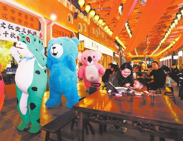 夜?jié)u深,蘭州黃河食渡文旅美食街依然熱鬧非凡,天水麻辣燙的攤位上人聲鼎沸。