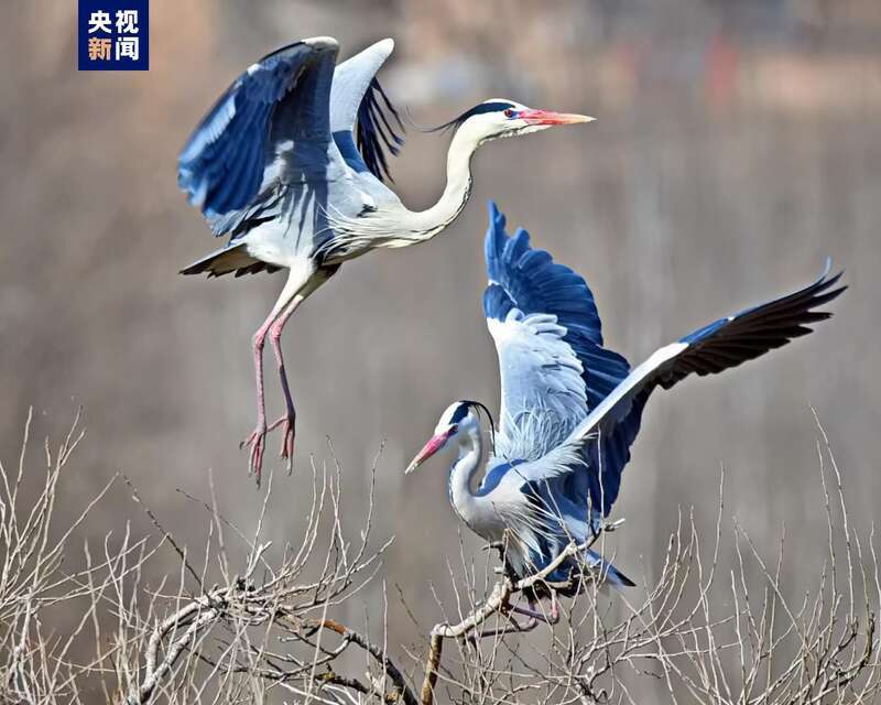 原標(biāo)題:蒼鷺如約飛來(lái)子午嶺 翩躚起舞繁衍生息