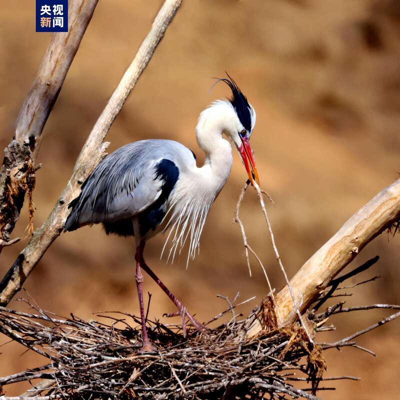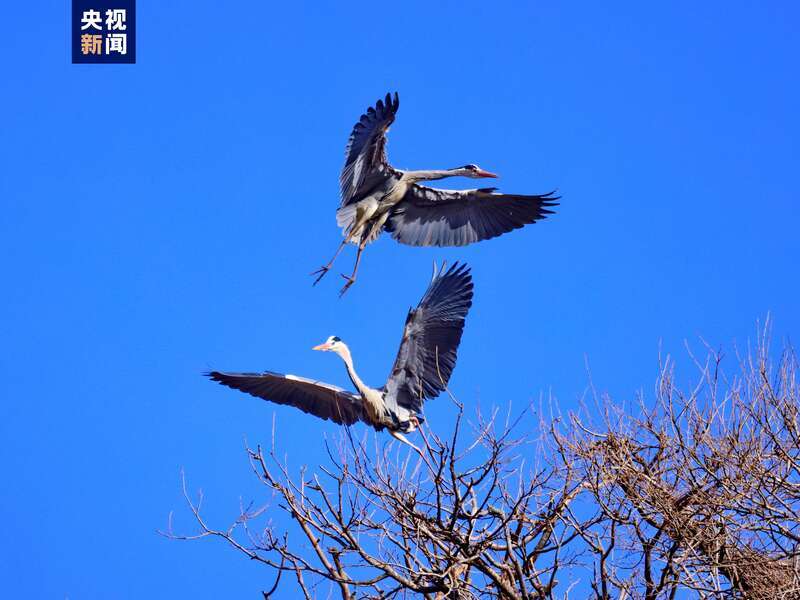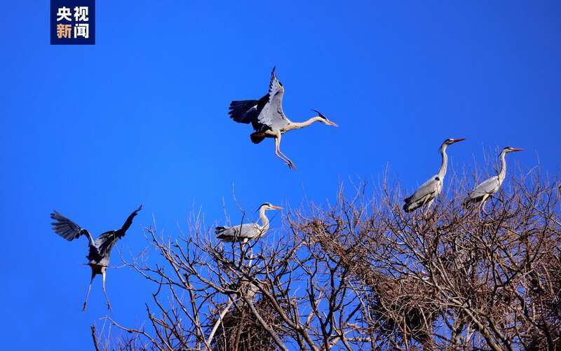 隨著氣溫回升,位于子午嶺腹地的甘肅省慶陽(yáng)市合水縣太白鎮(zhèn),有成群結(jié)隊(duì)的蒼鷺如約從南方飛來(lái)。它們或落在樹冠,偎依在一起,或維修著往年搭建好的巢穴,開啟新一輪的繁衍生息。子午嶺腹地是天然的生態(tài)林區(qū),近年來(lái),當(dāng)?shù)鼐C合實(shí)施固溝保塬、退耕還林、植樹造林等工程,森林覆蓋率達(dá)到69.82%,引來(lái)眾多珍稀鳥類繁衍生息。(總臺(tái)記者 焦健)