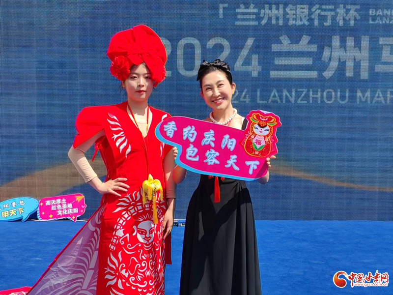 火紅的剪紙走秀,獨(dú)特的名俗文化吸引了眾多蘭州市民、“蘭馬”運(yùn)動(dòng)員和志愿者,大家紛紛拍照留念。
