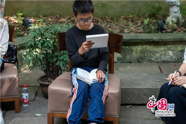 在王老師的感染下,活動現(xiàn)場交流熱烈,相談甚歡。參與者有學生、老師、旅游工作者等,更有駐足聆聽的游人。他們深情朗誦王老師的作品,有感而發(fā),從詩里談到生活,從工作學習中又回到書本,詩歌的靈感和種子悄然播下。
