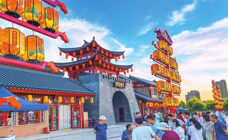 夏日的傍晚,這里格外熱鬧。步入巷內(nèi),穿過仿古牌坊,行走在青石板路上,經(jīng)過新中式仿古的巷子,寬敞的街道兩邊都是仿古的建筑,曲徑通幽處,美食坊,手工作坊,酒吧街,一字兒鋪排開,小攤上當?shù)刈灾频纳介狻⑥r(nóng)民自己種的各種蔬菜、自制的各種小工具、精美小籮筐、葫蘆瓢等好多物品勾起了兒時的回憶。