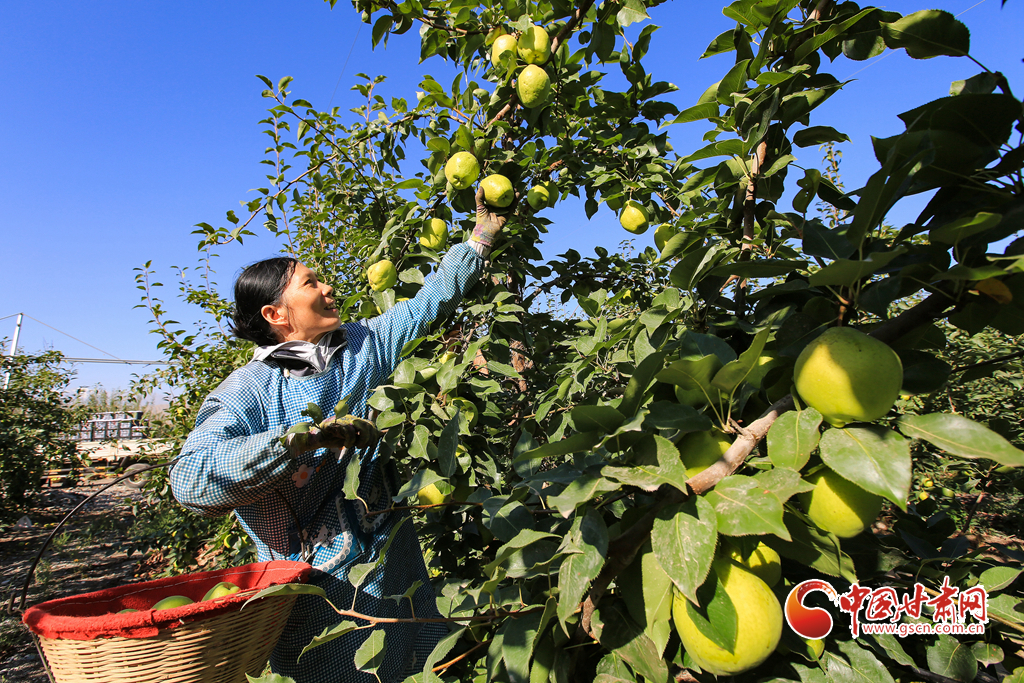 8月17日,位于祁連山下的甘肅省嘉峪關(guān)市文殊鎮(zhèn)豐源農(nóng)業(yè)科技示范園1850余畝戈壁早酥梨喜獲豐收,果農(nóng)們正忙著采摘、分揀、裝箱、儲存。