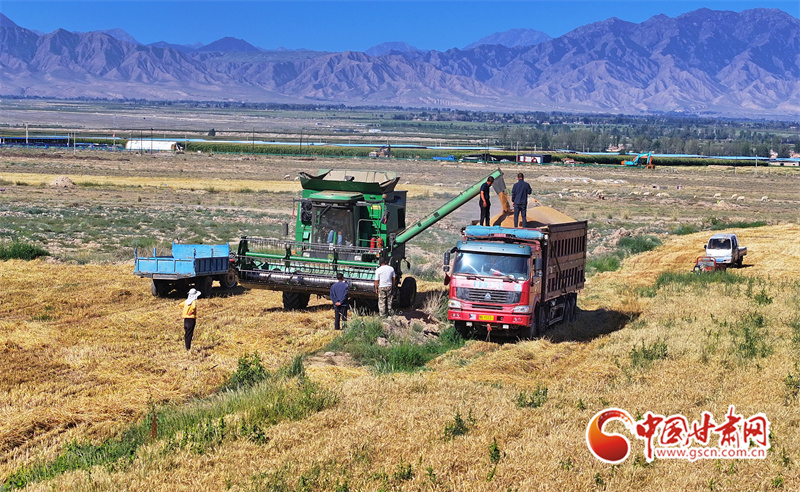 眼下,位于祁連山下的民樂縣南古鎮(zhèn)毛城村800畝連片小麥種植基地上,機聲隆隆,農(nóng)機手們駕駛收割機穿梭往返麥田之中搶收小麥,一派忙碌的豐收景象。近期,隨著民樂縣沿祁連山冷涼山區(qū)小麥迎來成熟季,民樂縣種植的26萬畝小麥進入了繁忙的收割期。