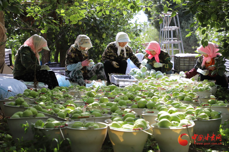 初秋時(shí)節(jié),走進(jìn)高臺(tái)縣宣化鎮(zhèn)林杰新品梨基地,香甜醉人的早酥梨猶如一盞盞黃燦燦的“小燈籠”掛滿(mǎn)枝頭。梨園內(nèi),100多名季節(jié)工忙著采摘、精選、套袋、裝箱,處處洋溢著豐收的喜悅,基地300畝早酥梨搶鮮上市。