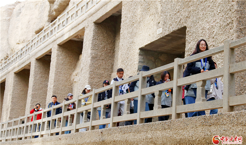10月20日,由中央網(wǎng)信辦網(wǎng)絡(luò)傳播局指導(dǎo),甘肅省委網(wǎng)信辦、甘肅省文物局主辦,中國甘肅網(wǎng)、快手甘肅承辦的“千年石窟 匠心傳承”網(wǎng)上主題活動(dòng)來到敦煌,來自中央及省市縣各級網(wǎng)絡(luò)媒體記者、商業(yè)平臺(tái)編輯、網(wǎng)絡(luò)名人等組成的采訪團(tuán)走進(jìn)莫高窟,近距離感知佛教文化、全方位了解文化遺產(chǎn)保護(hù),續(xù)寫甘肅石窟故事。
