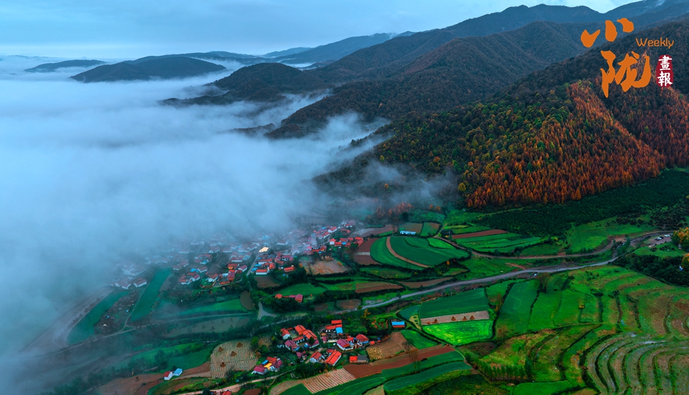 群山環(huán)抱中的鄧家塬橫臥在遠山的半坡上,那些曾經(jīng)翠綠的樹木,換上了金黃色的外衣,冬小麥發(fā)芽吐綠,將秋日大地裝扮得生機盎然。