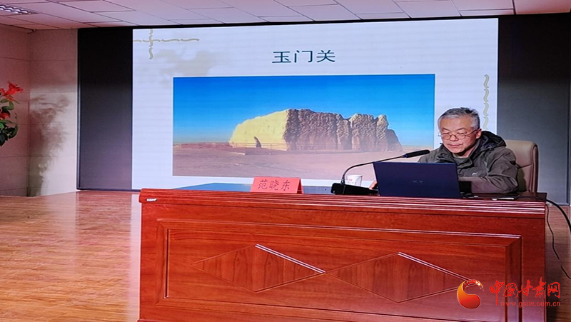 酒泉市肅州區(qū)博物館范曉東研究員以《何以酒泉-文物中的酒泉故事》為題,立足肅州區(qū)文博歷史,向與會(huì)師生介紹了古代絲綢之路、河西走廊歷史文化變遷、重要考古發(fā)現(xiàn)等,鼓勵(lì)同學(xué)們努力學(xué)習(xí),深入了解中華優(yōu)秀傳統(tǒng)文化,堅(jiān)定文化自信,將來(lái)為建設(shè)家鄉(xiāng)貢獻(xiàn)力量。