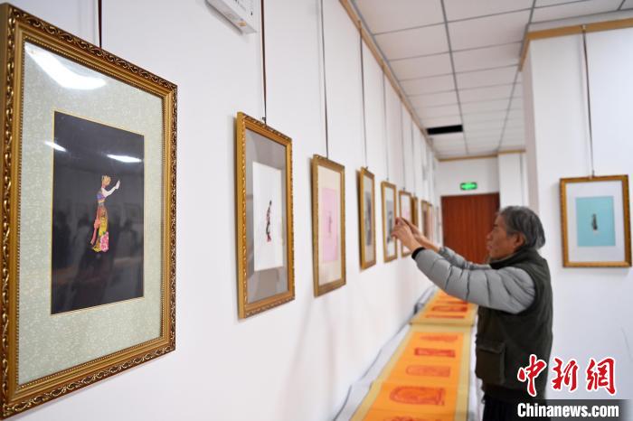11月19日,“蘭州剪紙”非遺傳承人李自新、李麟桐剪紙藝術(shù)展在甘肅省蘭州市開(kāi)幕,展出以敦煌壁畫(huà)、隴上風(fēng)物等為題材,精心創(chuàng)作的剪紙作品。圖為展出的剪紙作品。中新社記者 九美旦增 攝