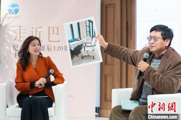 巴金故居常務(wù)副館長(zhǎng)周立民向觀眾分享巴金故居內(nèi)的陳設(shè)細(xì)節(jié)與相關(guān)故事。上海市委統(tǒng)戰(zhàn)部供圖