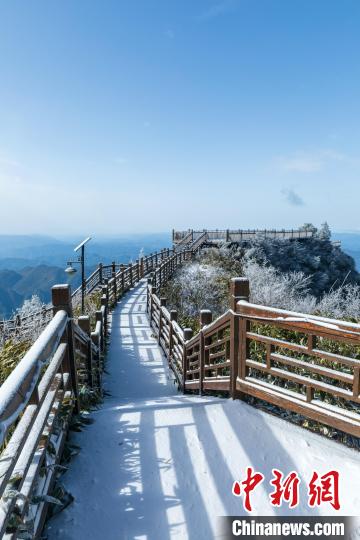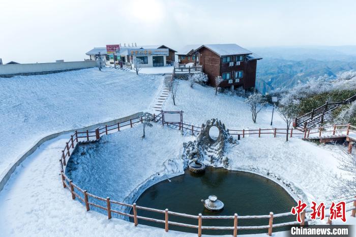 11月25日,受強(qiáng)冷空氣影響,四川省萬源市遭遇強(qiáng)降溫天氣。八臺(tái)山景區(qū)迎來了一場降雪,雪花紛紛灑灑,八臺(tái)山被裝點(diǎn)成了銀裝素裹的冰雪世界。鄭興平 攝