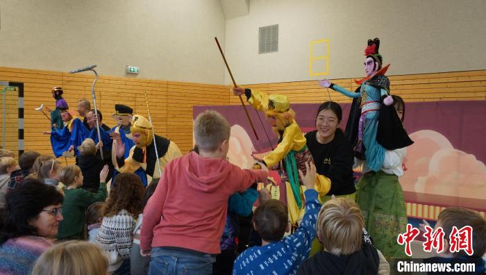 木偶藝術(shù)團22日來到柏林市三一小學,為該校一年級至四年級的學生們演出2場經(jīng)典木偶劇節(jié)目《三打白骨精》。木偶藝術(shù)團通過精湛的杖頭木偶操控技藝,結(jié)合京劇武打、真人演繹,生動傳神地展示了中國傳統(tǒng)文化故事,引發(fā)了孩子們的驚嘆。