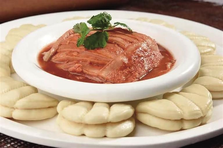 “黃河大鯉魚、蘭州糟肉、麻辣肉、老蘭州燴菜這些都是隴菜中的必點(diǎn)菜式!”董巖向記者介紹了店里的招牌菜:黃河宏豐鯉魚王,魚肉質(zhì)鮮嫩細(xì)膩、營(yíng)養(yǎng)豐富,在隴菜傳統(tǒng)烹飪技法中,紅燒黃河鯉魚堪稱經(jīng)典做法,搭配廚師精致的排盤,色澤紅亮的魚身與青蔥翠綠相互映襯,香氣撲鼻,令人垂涎欲滴。蘭州糟肉在隴菜中是一道極具特色的傳統(tǒng)名菜,每逢佳節(jié),它更是成為蘭州人家餐桌上必不可少的一道佳肴,承載著濃濃的節(jié)日氛圍和家的味道。精選肥瘦相間的五花肉,經(jīng)過刀工、糟鹵腌制、放入蒸鍋中蒸熟等一系列操作,肉質(zhì)變得軟爛,肥而不膩,糟香四溢。當(dāng)入口品嘗時(shí),那濃郁的糟香味瞬間在口中散開,與五花肉的醇厚口感完美搭配,相得益彰,讓人回味無窮。