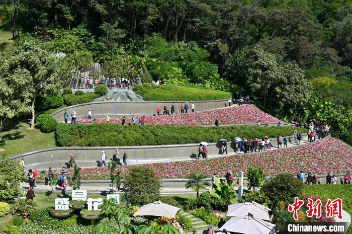 11月29日,廣東廣州,云蘿植物園正式開(kāi)園,簕杜鵑專類園吸引游客賞花拍照。中新社記者 陳楚紅 攝