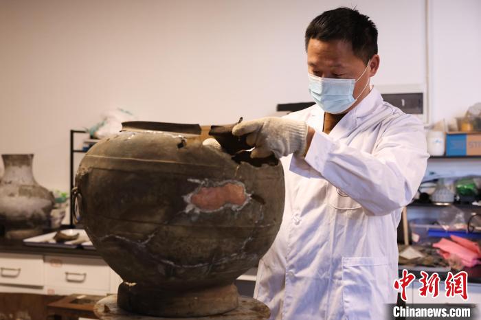 “青銅器和簡(jiǎn)牘不一樣,它需要相對(duì)干燥的環(huán)境來(lái)保存,由于墓室坍塌,很多出土的青銅器因受擠壓破碎、變形,還有很多銹跡和污物已經(jīng)掩蓋了該件器物的原本樣貌。”趙明輝表示,修補(bǔ)青銅器需要將一塊塊碎片進(jìn)行分類、比對(duì)、拼接等,如有變形還需先整形,隨后將其焊接,是一件不折不扣的“精細(xì)活”。