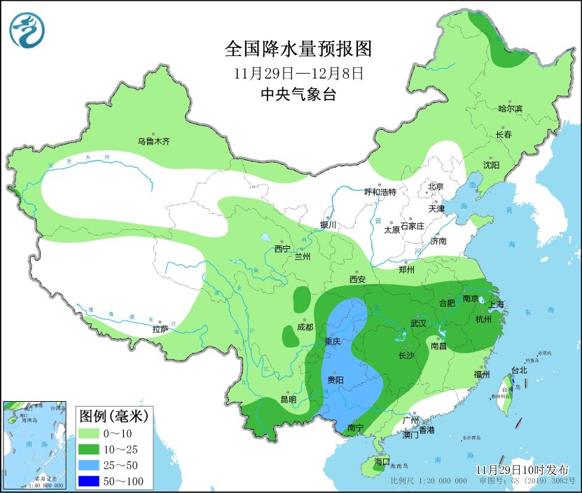 未來10天(11月29日-12月8日),東北地區(qū)中北部、內(nèi)蒙古東北部等地部分地區(qū)累計(jì)降水量有8~15毫米;西南地區(qū)東部和南部、江漢、江淮、江南西部和北部、廣西西部及臺(tái)灣島等地部分地區(qū)有10~20毫米,局地30~60毫米;云貴高原、內(nèi)蒙古東北部、東北地區(qū)等地部分地區(qū)累計(jì)降水量較常年同期偏多1~3倍,我國其余大部地區(qū)降水偏少。