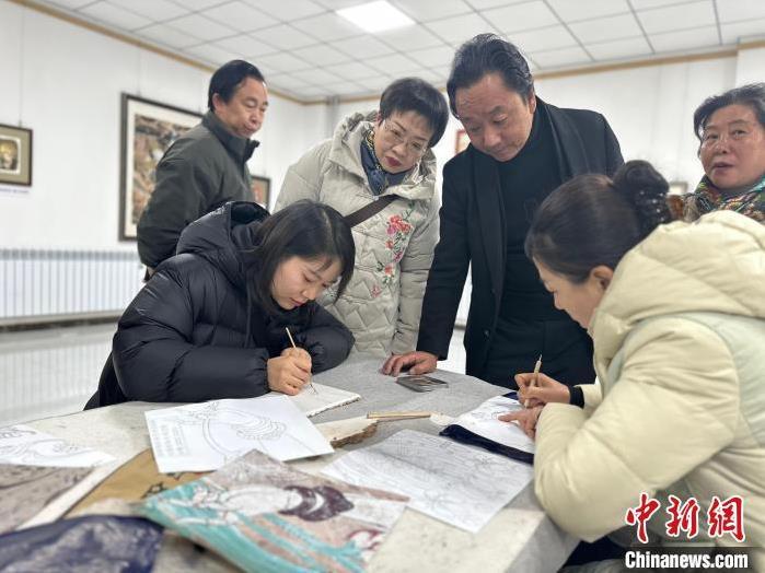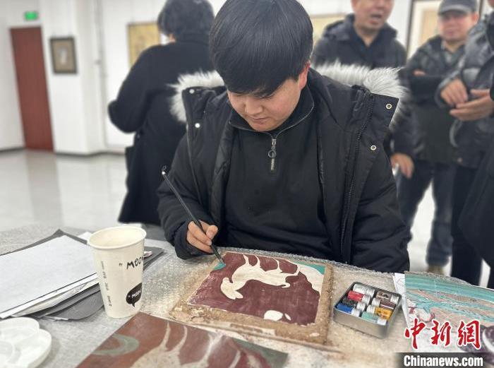 12月17日,由蘭州市七里河區(qū)委宣傳部、七里河區(qū)文體旅局聯(lián)合舉辦的“大漠孤陽映彩霞 敦煌神韻美如畫”新時代文明實踐主題活動暨敦煌巖彩畫書畫藝術(shù)展拉開帷幕。圖為繪畫愛好者現(xiàn)場學習繪制巖彩畫。楊娜 攝
