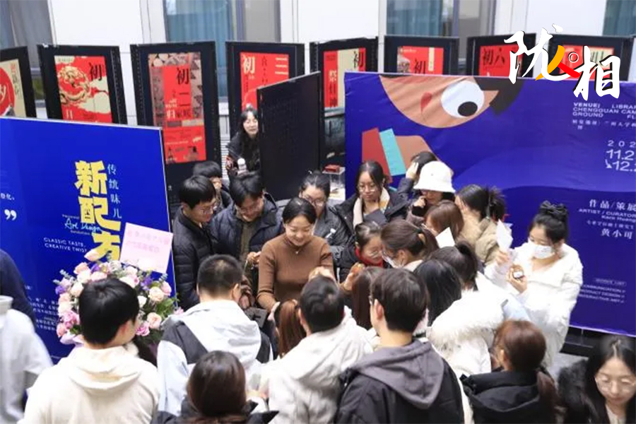 整體被搭建成“S”形的展區(qū),借鑒了博物館的陳展布局,讓參觀者不必走回頭路;展區(qū)第二部分陳列著各種文創(chuàng)玩偶的展臺赫然入目,讓人驚喜連連;展區(qū)外圍的留言墻,不僅有備好的A4紙,還貼心地粘上了馬克筆,方便觀眾留言……來參觀的人,即便對藝術(shù)不敏感也能被設(shè)計者的細(xì)心和創(chuàng)意輕松打動。