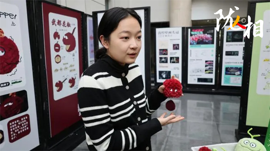 不僅是展區(qū)布置,黃小可的作品處處體現(xiàn)出令人耳目一新的細(xì)節(jié)。“我在設(shè)計它時想到了通感的表現(xiàn)手法,將花椒‘麻’的特點用觸覺來實現(xiàn)。”