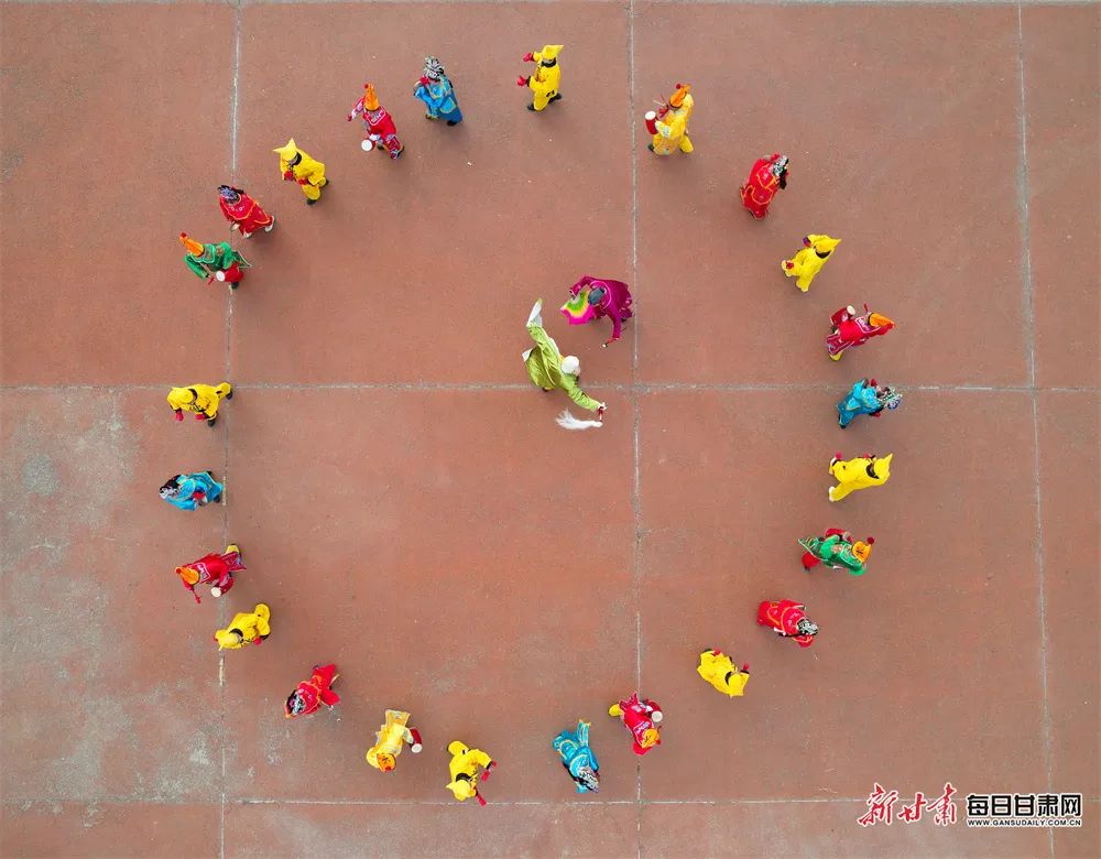嘉峪關(guān)市文化館組織當(dāng)?shù)胤沁z地蹦子表演者排練,為2025年春節(jié)社火展演作準(zhǔn)備。新甘肅·每日甘肅網(wǎng)通訊員 馬百旺