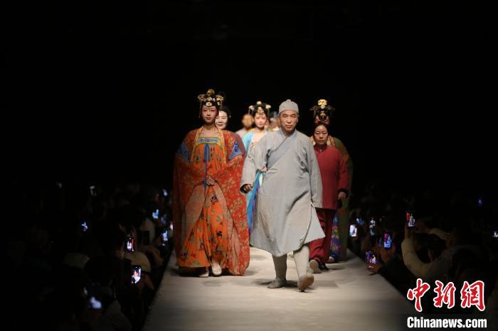 2025年1月9日晚,在甘肅敦煌大型室內(nèi)情景體驗劇《又見敦煌》劇場內(nèi),游人在行走中觀看演出。中新社記者 李亞龍 攝