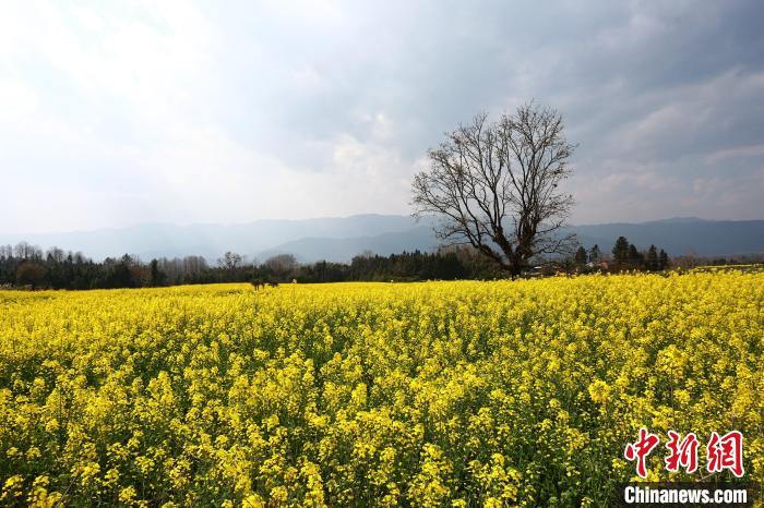 近日,云南省騰沖市界頭鎮(zhèn)成片的油菜花盛開,吸引不少游客前來觀光。金黃的油菜花海與遠處白墻黛瓦的村落相映成趣,共同繪就一幅寫意的水墨畫。圖為油菜花盛放。趙輝  攝