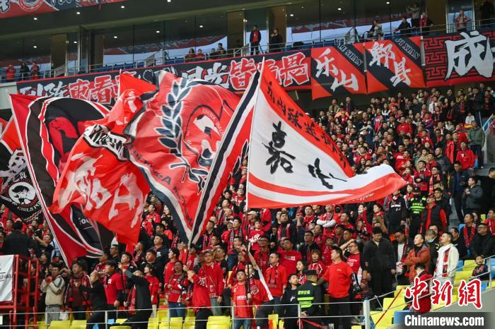 2025年3月2日,在四川成都舉行的2025賽季中超聯(lián)賽比賽中,成都蓉城隊(duì)(紅衣)主場(chǎng)迎戰(zhàn)天津津門(mén)虎隊(duì)?;鸨?ldquo;金牌球市”折射出成都賽事經(jīng)濟(jì)的日益崛起?!⒅铱?nbsp;攝