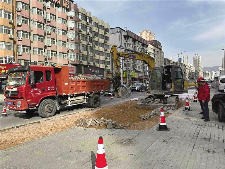 “該項目于2月初完成道路雙向改造實施方案,并初步完成交通導(dǎo)改方案,2月中旬開始實施人行道換磚,截至目前已拆除人行道磚約1300平方米,安裝道牙262米,鋪筑人行道道板1166平方米。”蘭州市政工程服務(wù)中心東崗設(shè)施養(yǎng)護(hù)所副股長馬全新介紹,該項目主要建設(shè)道路工程、雨水工程、管線改遷、照明工程、交通設(shè)施及相關(guān)配套設(shè)施,計劃5月完工。
