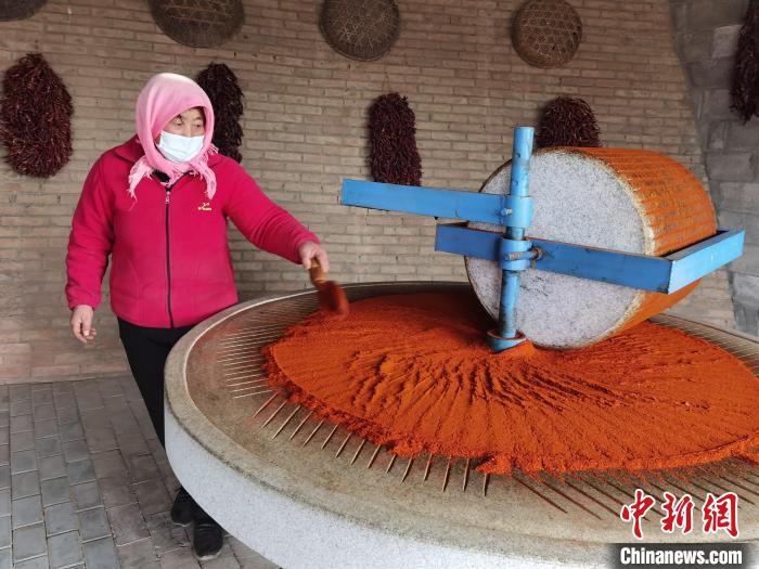 甘肅省慶陽(yáng)市環(huán)縣莊子峁“辣嬸”直播宣傳自家的石碾辣椒面。(資料圖)安志鵬 攝