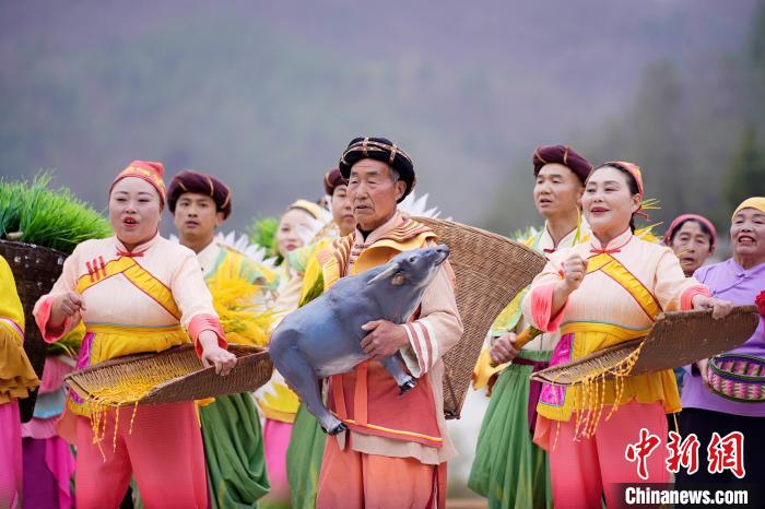 依托黎壩鎮(zhèn)層疊梯田的天然弧度與蒼翠山谷的立體聲場(chǎng),該劇將鎮(zhèn)巴民歌、陜南民俗等非遺元素融入山水實(shí)景。春之序曲《山歌迎賓》中,油菜花海間百人山歌陣,以原生態(tài)多聲部民歌編織迎賓盛景;夏之華章《綠的交響》里,非遺薅草鑼鼓與現(xiàn)代音樂碰撞出農(nóng)耕文明的力與美;秋之禮贊《金的節(jié)奏》在陽光下呈現(xiàn)打連枷聲浪與稻浪共舞的豐收奇景;冬之情書《紅的濃情》則通過圍爐陜南說唱,在吊爐光影間訴說巴山兒女的熾熱情懷。