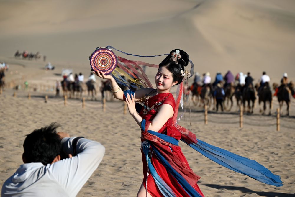 近年來,甘肅省敦煌市深入挖掘特色資源,推出旅游優(yōu)惠政策措施、智能化體驗(yàn)服務(wù)和低空飛行、旅拍等文旅項(xiàng)目產(chǎn)品,不斷豐富文旅業(yè)態(tài),激發(fā)文旅消費(fèi)新動(dòng)能。據(jù)敦煌市文旅部門統(tǒng)計(jì)數(shù)據(jù)顯示,今年1至4月份,敦煌市旅游接待人數(shù)538.78萬人次,同比增長(zhǎng)25.8%。